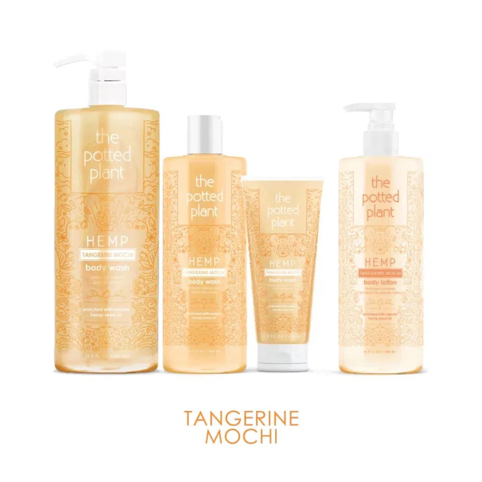 The Potted Plant Tangerine Mochi Body Wash uses simple, natural ingredients and fresh extracts for a pillowy, clean-beauty cleanse. Enriched with Hemp Seed Oil, this body wash will help restore smoothness, enhance softness and improve hydration with every use. TheTangerine Mochi scent is vibrant and welcoming. Get beautiful, clean skin with a clear conscience.