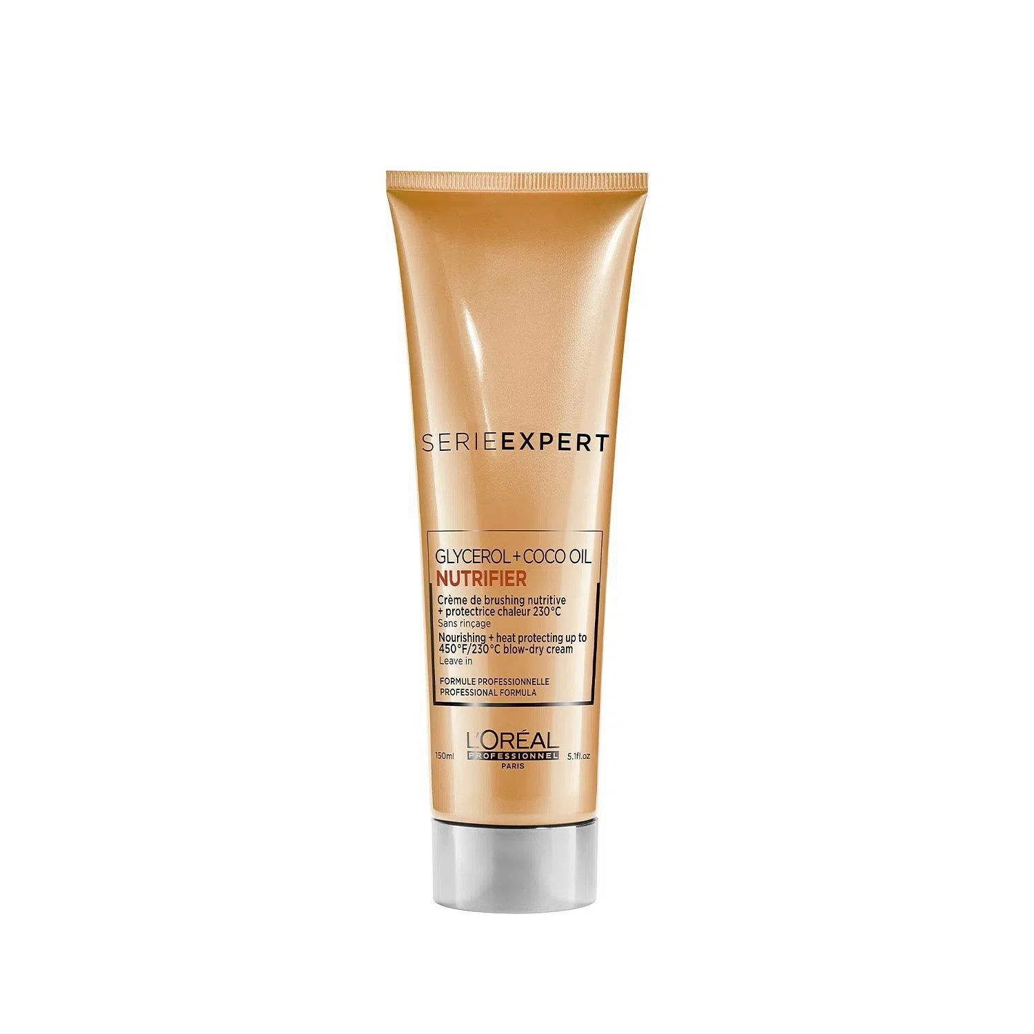 L’Oréal Professionnel Serie Expert Nutrifier Nourishing Thermo-Protective Blow Dry Crème nourishes and protects hair from heat damage up to 450°F (230°C). Professionally formulated with Glycerol and Coconut Oil, this leave-in blow dry crème will increase shine and smoothness while protecting from heat damage from the use of thermal styling products for all over healthier, more radiant hair.
