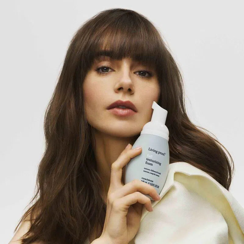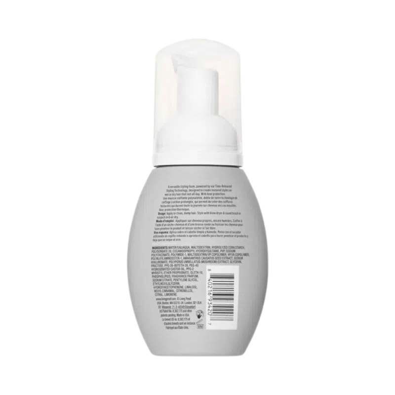 The Living Proof Full Texturizing Foam provides 3x more texture for fine, thin, and low-density hair types. This texturizing foam allows for effortless styling, restyling, or refreshing, ensuring a lasting look. It maintains a textured appearance all day while providing a lightweight finish and protection against heat up to 450°F/232°C. Enriched with powerhouse ingredients, including Time-Released Styling Technology for prolonged body and hold, Amaranth Peptides for fuller-looking hair, Hydrolyzed Cornstarch for style longevity, an Optimized Resin Blend for long-lasting hold, and a Mushroom Extract Blend for heat protection.