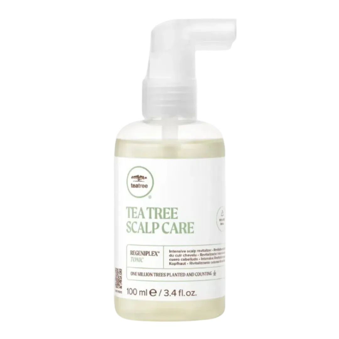 Paul Mitchell's Tea Tree Scalp Care Regeniplex Tonic is a stimulating scalp treatment that creates the optimal scalp environment for thicker, stronger, fuller-looking hair. This leave-on treatment is formulated with our exclusive Regeniplex® blend of Kakadu Plum, Pea Peptides, Clover Flower, Tumeric and Ginseng to help prevent breakage and add volume resulting in fuller, thicker-looking hair. Studies report that 85% saw increased hair volume and strength.* Simply spray onto the roots twice daily to dissolve build-up and stimulate the scalp to encourage healthy hair growth.